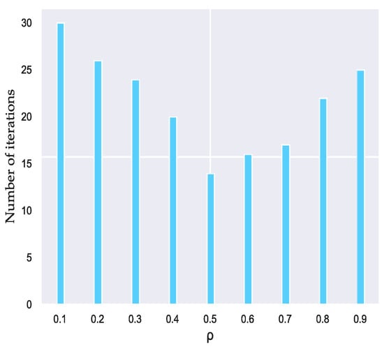 In addition, the value of the volatilization coefficient of the pheromone in Figure 5 directly affects the global search ability and convergence speed of the ant colony algorithm. The larger value will lead to the rapid volatilization of the searched path, increasing the probability of the ants choosing the duplicate path. The smaller value will make the pheromone play slowly, thereby weakening the convergence of the algorithm.