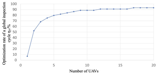 Optimization rate of a global inspection cycle under different numbers of UAVs.