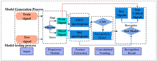 The process of predicting key signals using deep learning methods can be divided into two main stages: model development and model evaluation, as illustrated in Figure 9. During the establishment of the key signal recognition model, labeled training set signal data were utilized. These data undergo preprocessing, feature extraction, and convolutional training to generate an initial predictive model. To ensure more accurate and reliable recognition performance, the initial model is subjected to testing and evaluation using unknown test datasets. The extracted features are fed into the predictive model, and the accuracy of this model is assessed by comparing the output results with the corresponding ground truth values.