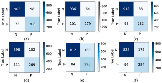 In situations where the data distribution is imbalanced, evaluating the model’s recognition performance requires a confusion matrix to be established and the calculation of precision, recall, and F1 score [41,42,43,44,45]. Unlike traditional accuracy, these metrics offer a more comprehensive and objective assessment of the classifier’s performance.