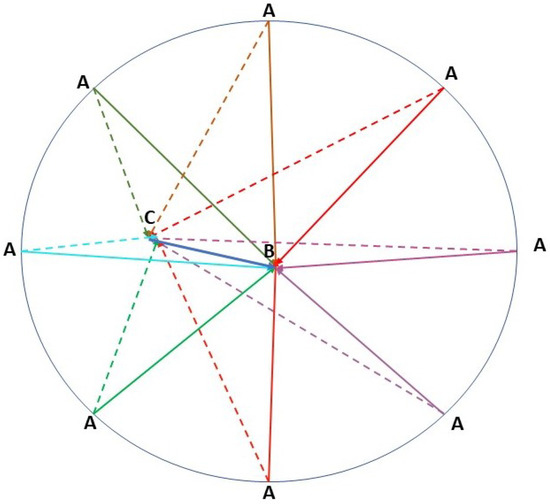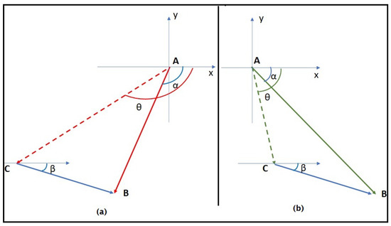 The new direction of the sensor node is defined by the angle . As shown in Figure 4, we have