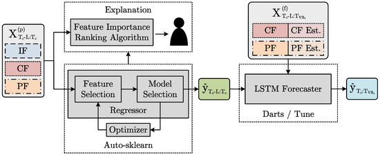 Based on the feature tensors, the prediction is performed according to Figure 3. The presented model consisting of the regression component and the forecasting component can be formally described according to Equations (4a) and (4b).