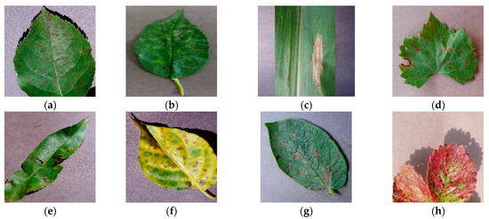 - Hossain, E.; Hossain, M.F.; Rahaman, M.A. A color and texture based approach for the detection and classification of plant leaf disease using KNN classifier. In Proceedings of the 2019 International Conference on Electrical, Computer and Communication Engineering (ECCE), Cox’s Bazar, Bangladesh, 7–9 February 2019; pp. 1–6. [Google Scholar] [CrossRef]