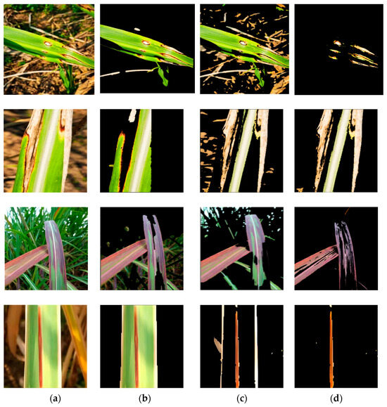 - Ratnasari, E.K.; Mentari, M.; Dewi, R.K.; Ginardi, H.R.V. Sugarcane leaf disease detection and severity estimation based on segmented spots image. In Proceedings of the International Conference on Information, Communication Technology and System (ICTS), Surabaya, Indonesia, 24 September 2014; pp. 93–98. [Google Scholar] [CrossRef]