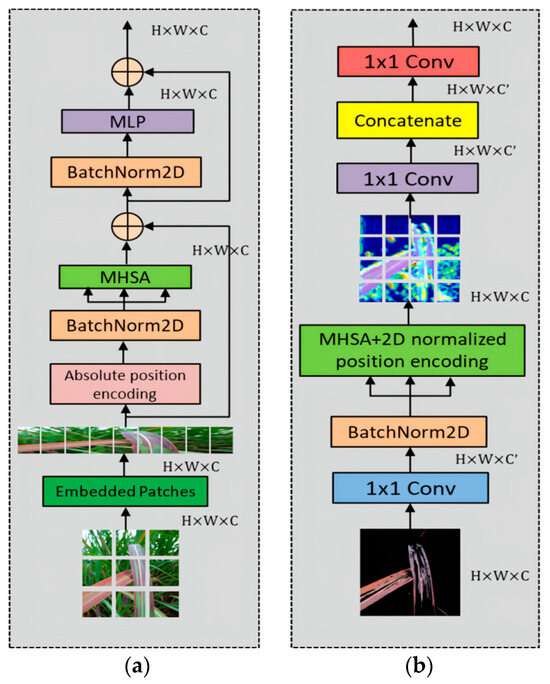 - After the CNN pooling layer, we incorporated the MHSA (multi-head self-attention) mechanism. This mechanism allows parallel computation of different input features, enabling each attention head to capture different disease image features. It helps extract spatial and channel relationships, resulting in better identification of disease texture and color features.