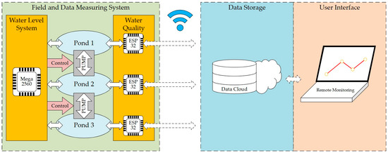The field and data measuring system was set up in different ponds. The system comprised three core components, delineated as follows: