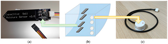 (a) Part of the water level monitoring sensor kit. (b) The condition in which the water level sensors are settled. (c) Liquid level sensor.