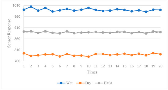 This study employed machine learning algorithms to continuously update the sensor’s thresholds in real time. The machine learning algorithm utilized statistical analysis of the sensor readings from both above and below the liquid level for the first 15 readings from each sensor. After dynamically regressing the data, it calculated the optimal threshold value for that specific sensor and the original value, and the linear regressions are shown in Figure 5.