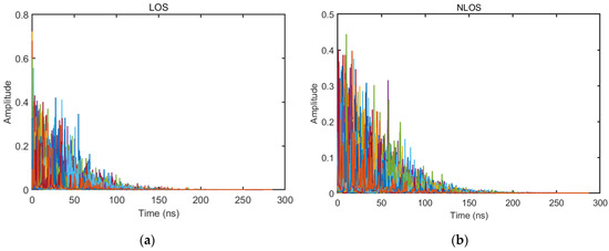 CIR waveform in LOS/NLOS environment: (a) LOS CIR waveform; (b) NLOS CIR waveform.