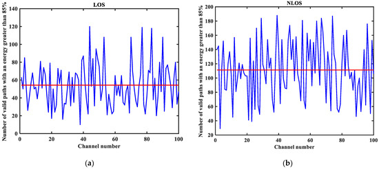 The number of valid paths with energy greater than 85% in the LOS/NLOS environment: (a) LOS number of valid paths with energy greater than 85%; (b) NLOS number of valid paths with energy greater than 85%.