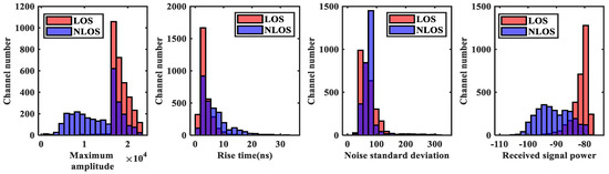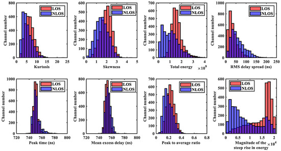 Numerical distribution of signal characteristic parameters in LOS and NLOS environments (Purple color represents the portion where the number of channels are overlapped).