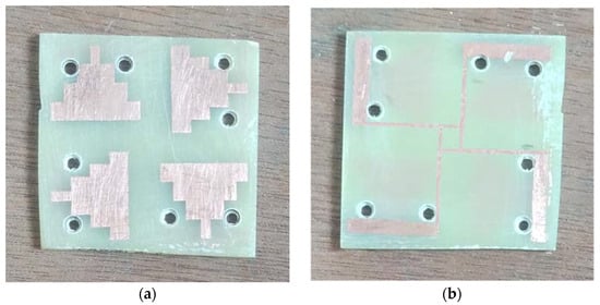 The fabricated MIMO system top and bottom views are depicted in Figure 5a and Figure 5b, respectively.