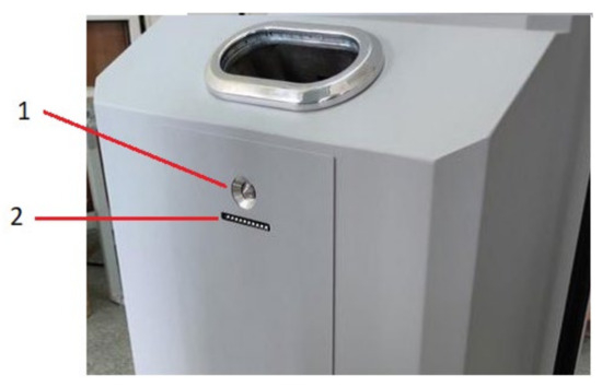 Before each measurement, a blow-off system was activated to blow explosive particles off the clothing or hands of the person being tested. The blow-off system was automatically activated when the measurement procedure began (Figure 6). This system was equipped with a membrane air-drying system and pollen and carbon filters to ensure that the tested air was free of contaminants that could falsify the result. Air is blown out through a blow-off nozzle outlet positioned directly below the sampling nozzles at the level of the shoes, around the pockets, and around the hands (Figure 6). Blow-off nozzles—working pressure: 4 bar.