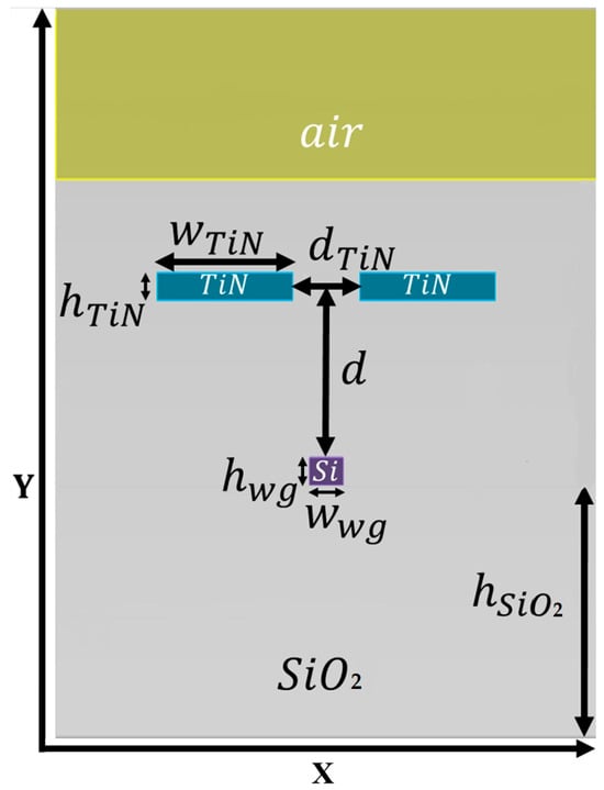 Schematic sketch of double TiN in Si strip wg structure in the x–y plane.