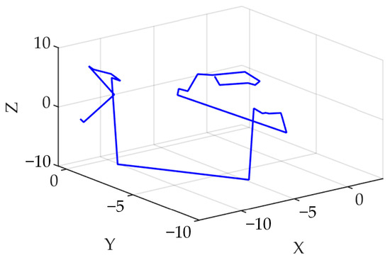 Figure 2 displays a schematic diagram of Levy flight in 3D space, which showcases the random search of the INGO in a 3D space. Equation (4) is transformed by adding the Levy flight strategy: