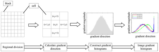 The idea of the HOG algorithm is to represent the profile of an image target through the distribution of edge directions [11]. The specific strategy involves dividing the recognized image into several fixed-sized regions. In each region, gradient features are accumulated by computing the gradients of the image pixels and performing feature computation. This process yields a histogram of gradient orientation with a specified number of dimensions, as shown in the Figure 3, which is completed by the following steps: