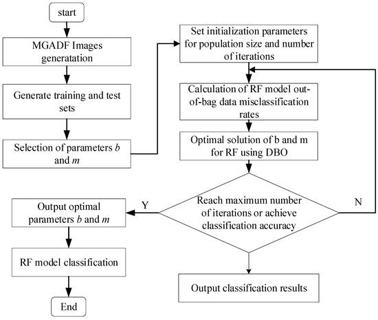 Step 5: The number of decision trees b and minimum leaf point tree number m under optimal solution conditions are satisfied by the DBO algorithm and fed into the RF classifier.