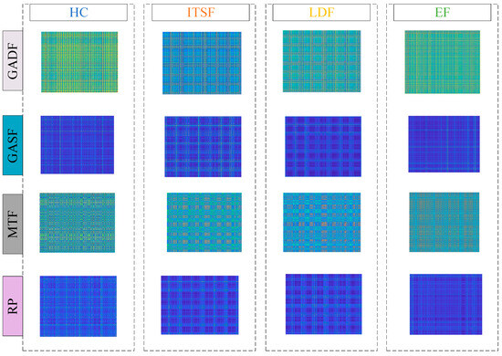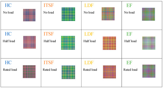 The MGADF images of the steady state dataset under different load conditions at the speed of 1000 r/min are shown in Figure 11. It is evident that there are differences between the various types, but there is a certain degree of similarity between the images of HC and LDF. The variation between the MGADF images of the same type of PMSM is not obvious as the load changes from no load to rated load.