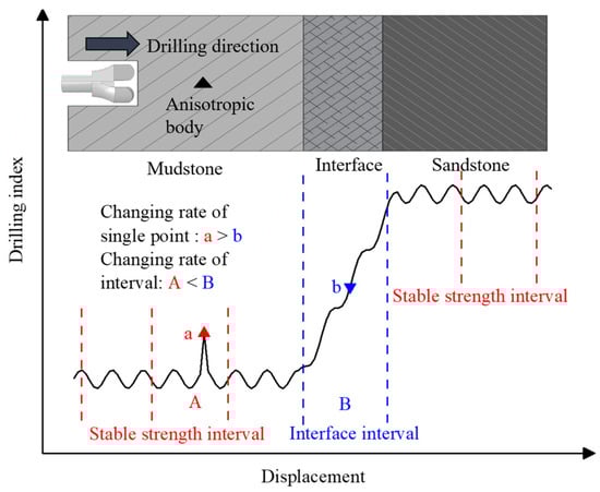 Roof accidents have remained a significant safety concern in the coal-mining industry. In 2022 alone, there were 31 fatal roof accidents reported in Chinese coal mines, resulting in 66 fatalities. These incidents accounted for approximately 18.5% of the total number of coal mine accidents and 26.9% of the overall deaths. There is always a sudden and violent collapse of the roadway roof in a roof accident, accompanied by the release of extensive contained energy, and the collapse of roof rocks into the roadway [1]. Most roof accidents can be attributed to the delayed detection of geological changes within the roof rock layer [2]. This delay primarily stems from the absence of real-time monitoring capabilities for obtaining crucial interface information using conventional physical exploration methods in coal mines [3]. The properties of interfaces in composite rock layers include crucial information such as structural surfaces, slip surfaces, and material differentiation surfaces, which are of great significance for reflecting key structural factors in roof support design, such as cracks, weak interlayers, and key layers [4]. Hence, the real-time detection of roof interfaces in the drilling process of roadway anchoring holes holds great significance. It enables a timely reflection of geological changes in roof layers, the optimization of support parameters, and the proactive mitigation of potential roof collapses.