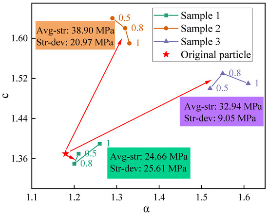 Due to the mismatch between the drilling data characteristics and the initial values of and , the detection errors of samples 2 and 3 were larger compared to those of sample 1. However, considering the similar intensity levels and drilling conditions of the three samples, the overall drilling errors remained within the controllable range. This suggests that the characteristic values corresponding to samples 2 and 3 were within a certain range around the initial parameter values. Consequently, in the subsequent optimization study, the optimization intervals for and were set as (0, ) and (0, ), respectively, where and were the initial values of the parameters.