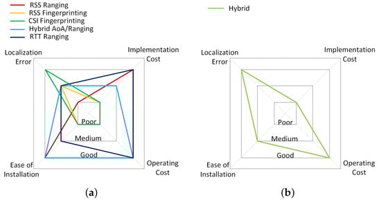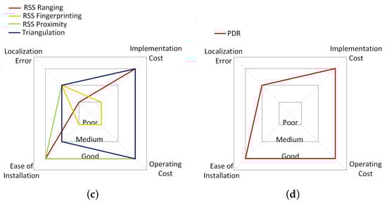 Overall, localization errors for BLE techniques leave much to be desired. As can be seen in Table 4, only the RSS fingerprinting technique seems capable of 10 cm localization errors at this moment. However, BLE technology is a good choice for an IPS owing to its low hardware cost and power efficiency, which can significantly reduce the costs of deployment and maintenance compared to other wireless technologies.