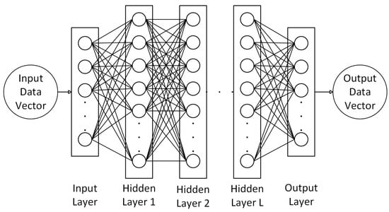 where is the weight vector of the nth neuron, is the input vector of the nth neuron, is the activation bias of the nth neuron, is the activation function applied to the neuron’s output [117] and N is the total number of neurons in the layer. The output of each neuron is then propagated forward to the next layer, as demonstrated in Figure 3. These layers of neurons, where each neuron in one layer is connected to every neuron in the next, are known as fully connected layers. Due to their interconnected nature, models made up of these layers scale very poorly when the number of neurons in a layer is increased. DNNs have been applied to a wide range of tasks in indoor localization [70,118,119]. One example application of an ANN to indoor localization is [120], which detects LoS blockages on BLE technology and corrects the corresponding RSS dips.