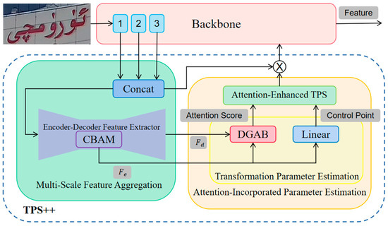 Architecture of TPS++. CBAM [53] is channel–space joint attention, which is often used to highlight important features. DGAB [34] is a specially designed dynamic gated attention block.