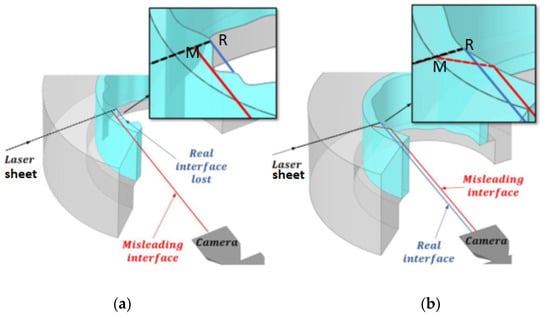 As with the rest of the methods previously discussed, LIF has also some inconveniences. The main disadvantage that is common to all optical methods is the error produced by the light refraction as it passes from one medium to another. The annular flow is characterized by having two phases contained generally inside a curved pipe. The main error types occurring because of the refraction phenomenon have been explained by Charogiannis et al. [31] and are displayed in Figure 5.