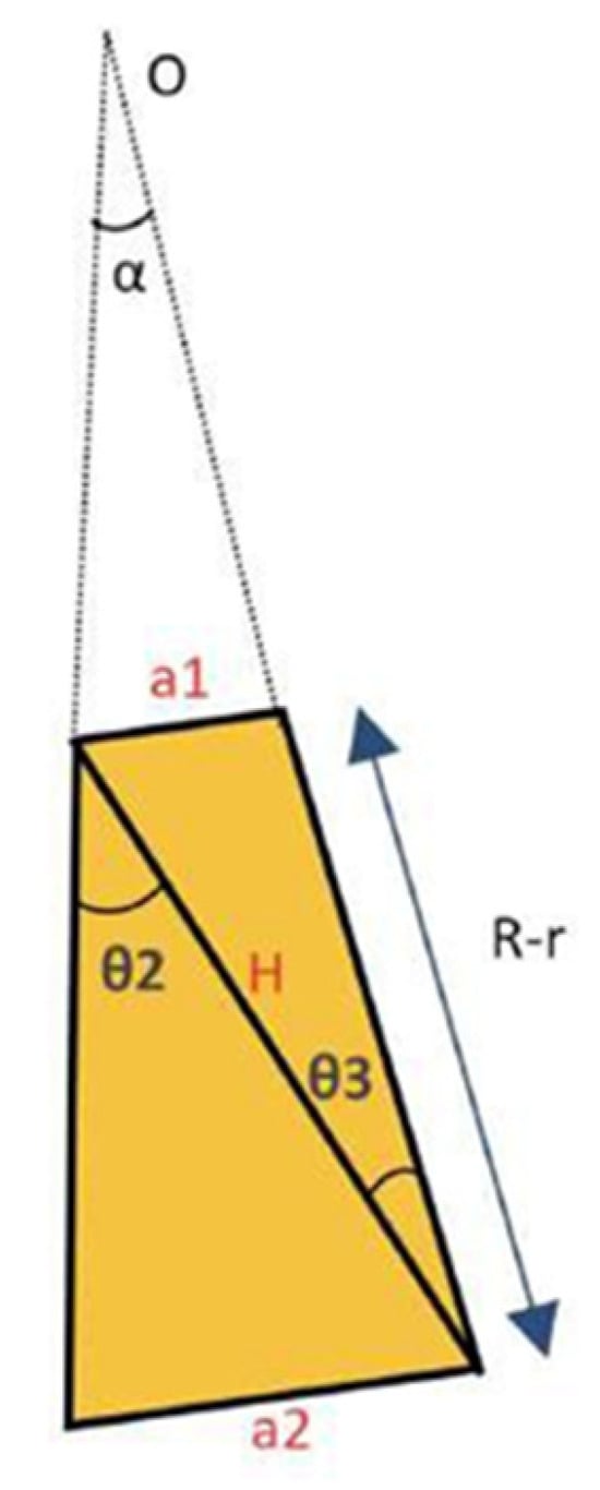 The only missing term gives the relation of the angles and with the measured thickness , which can be obtained from and distances, depicted in Figure 12 as follows: