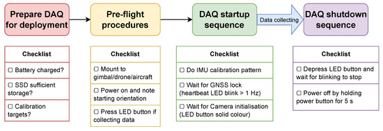 Checklists for each stage of DAQ deployment.