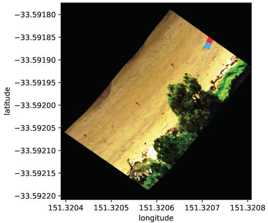 The navigation and orientation data collected after time synchronisation were used to directly georeference the hyperspectral data collected. The resulting datacube can be visualised in Figure 8.