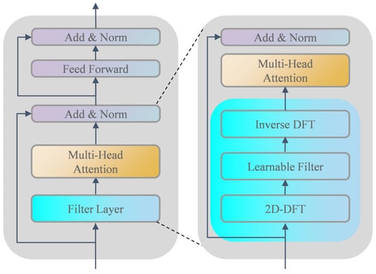Filterformer is primarily based on transformer encoder architecture to design a filterformer with a filtering function. Its structure is shown in Figure 4. The network consists of several blocks including a filter layer, self-attention mechanism (SA), Multi-Head Attention (MHA), residual connection and layer normalization (LN) block, and feed forward network (FFN). Within this framework, the self-attention mechanism serves as the fundamental building block of MHA.