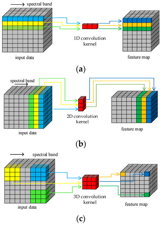Convolution operations: (a) 1D; (b) 2D; (c) 3D.