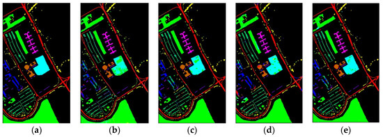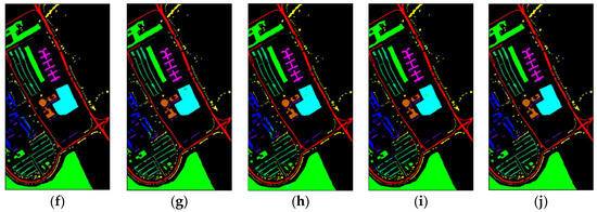 Figure 10 shows classification maps of different methods for the UP dataset. More misclassified pixels appear in some classes with few labeled pixels such as Gravel and Bare Soil.