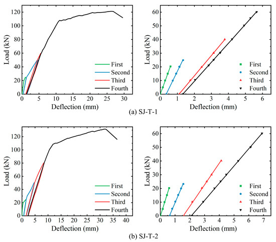 Cracking and ultimate load details of SJ-T-1 and SJ-T-2.