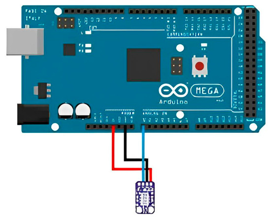 - Connect the SDA pin of the sensor to the SDA pin on the Arduino Mega 2560.