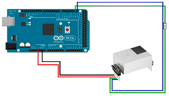- Connect the Rx pin of the sensor to the Rx pin on the Arduino Mega 2560.