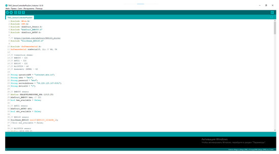 The program for managing the greenhouse gas control process was created using the Arduino IDE. The variables for the controlled and adjustable parameters of the technological process are defined in the variable editor window (Figure 10).
