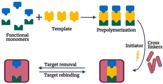 - Zhang, Y.; Wang, Q.; Zhao, X.; Ma, Y.; Zhang, H.; Pan, G. Molecularly Imprinted Nanomaterials with Stimuli Responsiveness for Applications in Biomedicine. Molecules 2023, 28, 918. [Google Scholar] [CrossRef]