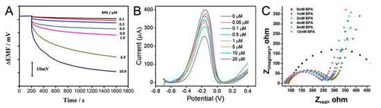 - Liu, B.; Yan, J.; Wang, M.; Wu, X. Molecularly imprinted electrochemical sensor for the detection of bisphenol A. Int. J. Electrochem. Sci. 2019, 14, 3610–3617. [Google Scholar] [CrossRef]