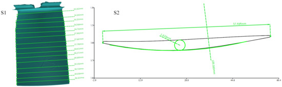 S1 is the measurement of the aero engine blade diameter; S2 is the measurement of the blade section size.