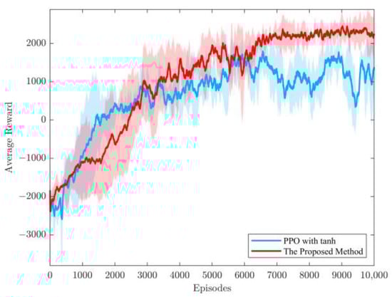 Experimental validation has demonstrated that training the PPO algorithm with ReLU as the activation function in a multivariable coupled system environment is challenging. The average reward values during training can suddenly become very small, making it impossible to compare the average reward curves on the same coordinate axis. This may be because the ReLU activation function may lead to the problem of a vanishing gradient or gradient explosion in some cases, which will affect the stability of the optimization process. In contrast, in this study, tanh was chosen as the activation function because it maintains the output in the range [–1, 1], which helps to minimize the effect of the gradient problem and improves the algorithm’s stability. This stability is essential for controlling multivariate coupled systems, which often contain complex interactions and require a stable learning process for accurate control.