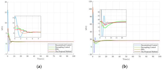 MV values of different control methods. (a) MV values for loop 1; (b) MV values for loop 2.