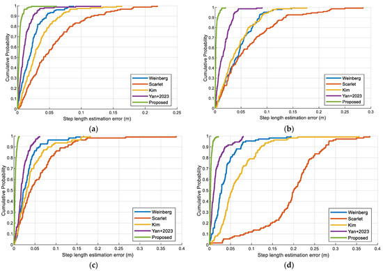 Deep learning-based step length estimation has been widely researched in the past few years. Xing et al. [38] presented a backpropagation ANN (BP-ANN) to calculate step length. Wang et al. [39] proposed TapeLine, which utilizes a LSTM module and denoising autoencoders for step length estimation. Ping et al. [40] designed a step length estimation algorithm based on BiLSTM that is able to effectively extract step length features and realize accurate step length estimation under multiple walking conditions. Gu et al. [41] utilized stacked autoencoders and an affine regression layer to achieve step length estimation accurately. Bo et al. [42] put forward a neural network-based step length estimation system called MINN, which utilizes multi-level ResNet and GRU and a multisource unsupervised domain adaptation (UDA) network to extract spatial-temporal and mode-invariant characteristics, respectively. Hannink et al. [43] employed CNN to map inertial sensor data for a specific step to the obtained step length. Zhang et al. [44] proposed an online sequential extreme learning machine to achieve step length. Edel et al. [45] utilized BiLSTM to detect step numbers and a linear model to calculate step length from raw inertial sensor data. Klein et al. [46] proposed the step length estimation algorithm StepNet, consisting of an activity recognition model and a regressor.