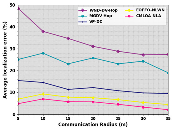 Furthermore, on a CR of 35 m, the CMLOA-NLA technique achieves a lesser ALE of 2.09% while the WND-DV-Hop, MGDV-Hop, VPDC, and EOFFONLWN models offer an increased ALE of 27.38%, 18.98%, 9.50%, and 4.47%, correspondingly.