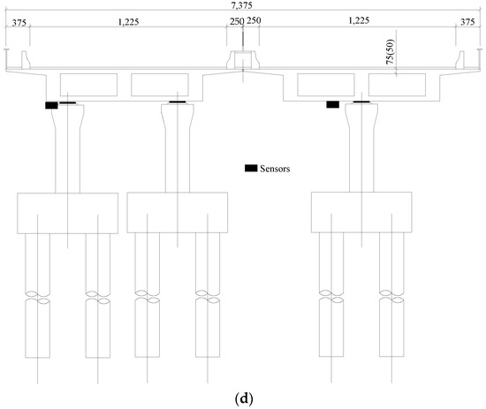 Structural health monitoring (SHM) has been recognized as a viable technology for ensuring the structural and operational safety of infrastructure systems by providing early warning of damage, preventing costly repairs or even catastrophic failure [2]. The emergence of structural health monitoring (SHM) systems for bridges can be traced back to the 1980s. In England, a long-term monitoring instrument and automatic data acquisition system were installed on the Foyle Bridge, which primarily monitored the data of main girder deflection, temperature, strain, etc. It was the earliest monitoring system installed and was considered relatively complete [3]. In the mid to late 1980s, the United States began to install monitoring sensors on many bridges. For example, more than 500 sensors were installed on the Sunshine Skyway in Florida to measure structural parameters such as temperature, strain, and displacement during and after the bridge’s construction [4]. Muria developed a monitoring system to monitor the dynamic characteristics of a Tampico cable-stayed bridge with a total length of 1543 m [5]. With the rapid development of signal processing, sensing, data collection, and computing technology in recent years, the application of structural health monitoring (SHM) in engineering structures has become increasingly popular [6,7,8,9,10,11,12], and the SHM system has been increasingly implemented on different kinds of bridges, such as the Kap Shui Mun Bridge and Ting Kau Bridge [13], Runyang Bridge [14], Yonghe Bridge [15], Tsing Ma Bridge [16], and Yangtze River Bridge [17] in China, the Oresund Bridge [18], Henrique Bridge [19], and Great Belt East Bridge [20] in Europe, the I-39 Northbound Wisconsin River Bridge [21] in the US, and so on. Although many SHM systems have been established and studied, the main focus has been long-span bridges. Regarding middle-span bridges, few studies have been carried out. Compared to the intricate SHM systems employed for long-span bridges, designing an SHM system for medium-span bridges is comparatively simpler. Although it still demands higher accuracy in monitoring parameters, it requires fewer parameters and is easier to operate. Given that medium-span bridges occupy a significant proportion of urban roads, designing SHM systems for such kinds of bridges has promising prospects in practical urban road bridge applications.
