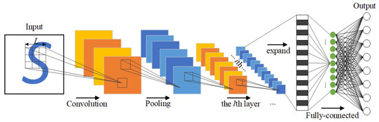 The fault diagnosis of rolling bearings is achieved through the CNNM network after successfully completing IFSM and CAMM. The classical structure of CNN is shown in Figure 5, which is mainly composed of input layer, convolution layer, pooling layer, activation function layer, and full connection layer.