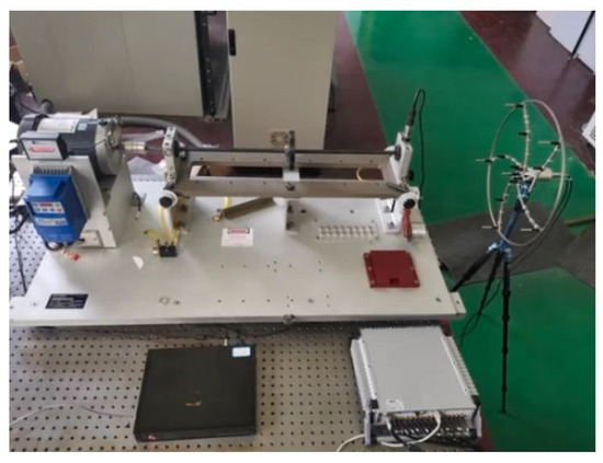 In this study, in order to verify the feasibility of the proposed method, experimental data were obtained from the rolling bearing test bench. The general technical route is shown in Figure 6. The experimental test system included the motor, controller, rotating shaft, experimental bearing, acoustic array sensor, and data collector, as shown in Figure 7. Sixteen acoustic sensors are mounted on a circular disk in the form of a ring array. The sensor model number is BSWA MPA416, and the sensor sensitivity is 50 mV/Pa; according to the sampling theorem, the sampling frequency of each channel is set to 16,384 Hz. the attenuation of the signal becomes more pronounced when it is positioned 500 mm away from the transmitting source. To facilitate the acquisition of the acoustic array signal, the acoustic array sensor is installed on the plane 200 mm away from the bearing under test; the center point of the sensor is in a straight line with the center of the bearing under test. The status information of the bearing during operation is collected by the acoustic array sensor, and the collected acoustic signals are transmitted to the data acquisition system. The acoustic array sensor is shown in Figure 8a. The model of the data collector is PAK MKII-SC42, as shown in Figure 8b.