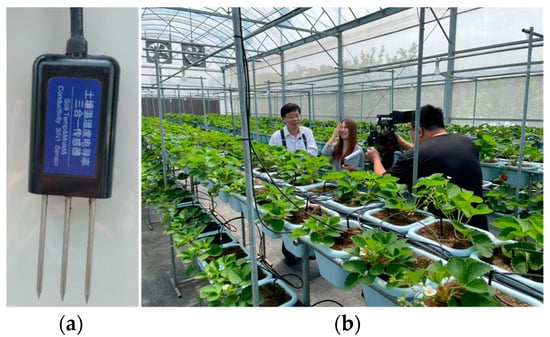 (a) A 3-in-one sensor and (b) the Bao strawberry greenhouse.