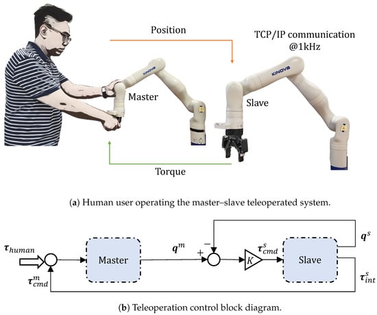 Master–slave control diagram for teleoperation with physical interaction with humans, captured by .